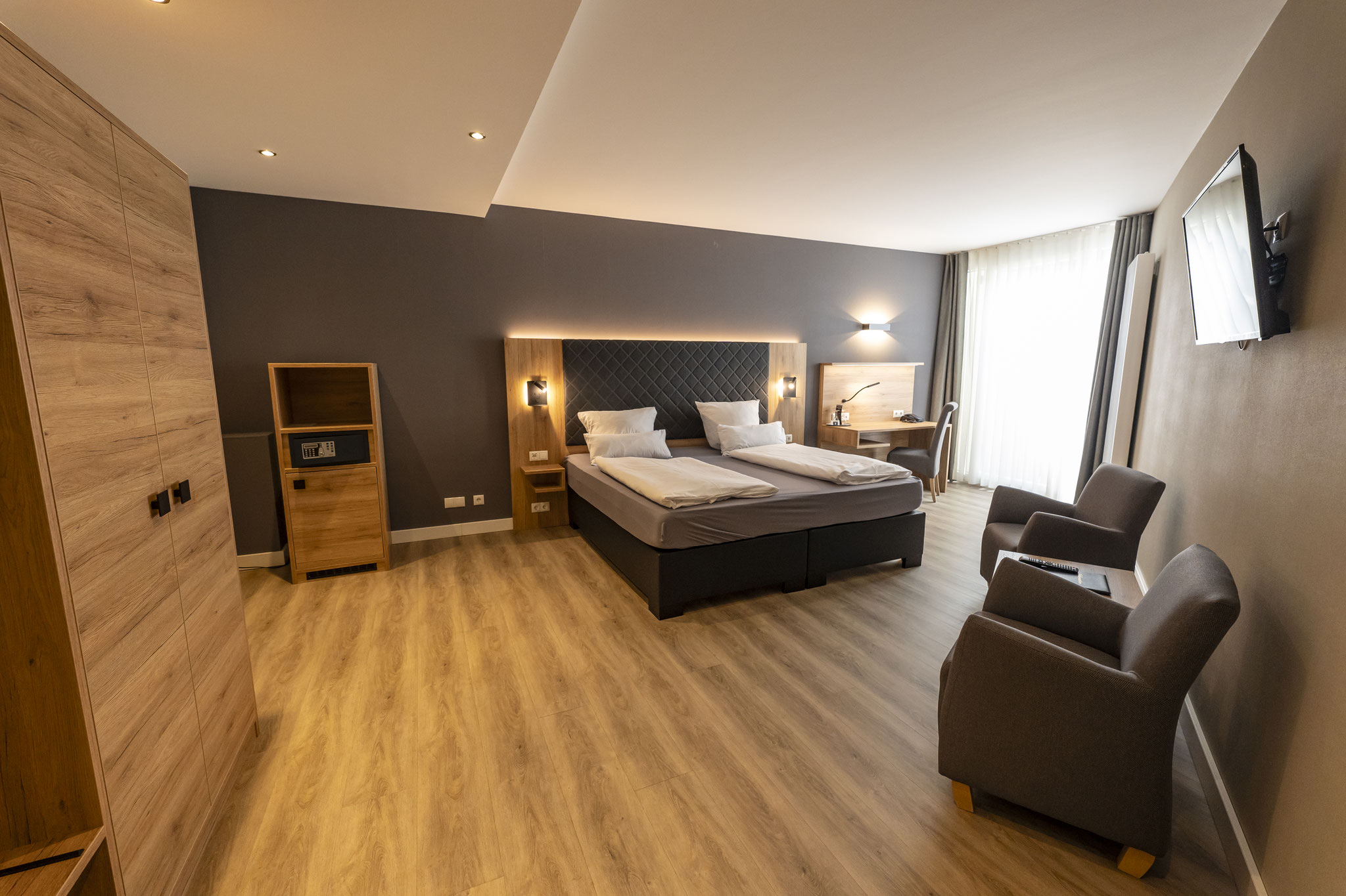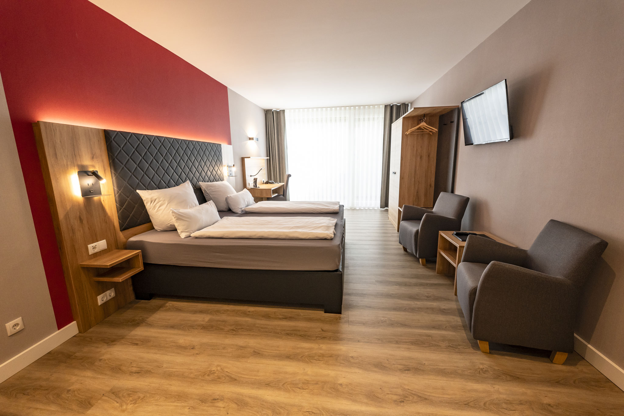 In unserem Hotel sollen sich nicht nur Sie, sondern auch Ihr Hund rundum wohlfühlen. Deshalb bieten wir ein großes Zimmer im Souterrain an, in dem Hunde herzlich willkommen sind. Genießen Sie eine entspannte Auszeit gemeinsam mit Ihrem treuen Begleiter, ohne auf Komfort zu verzichten. Unser hundefreundliches Zimmer bietet ausreichend Platz.